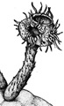 A tentacled placozoan developed a cell with a complicated stinging cnida (a 'harpoon' with trigger hair). It was fixed to the bottom, catching its planktonic prey with its venomous tentacles, and transferring them to its mouth/stomach.