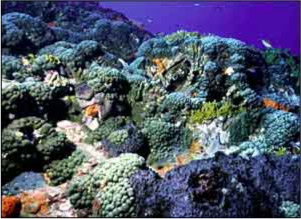 With the plankton becoming ever more abundant, and the rising seas exposing new continental shelves, the sponges and sea anemones (coral) grew, many forming symbiotic relations with dinoflagellates or algae, and forming vast colonies — year after year, they built up reefs.